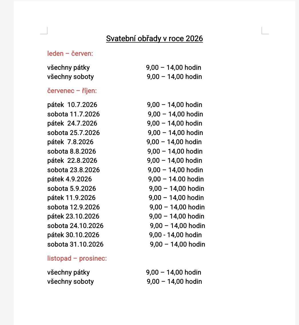 Poplatek za možnost realizace svatebního obřadu v prostorách zámeckého areálu uhradí snoubenci nejpozději týden před obřadem na podatelně OÚ Slezské Rudoltice.